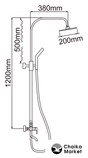 душевая система (с верхним душем), настенный монтаж, механический смеситель, верхний душ 200 мм, ручной душ 99 мм