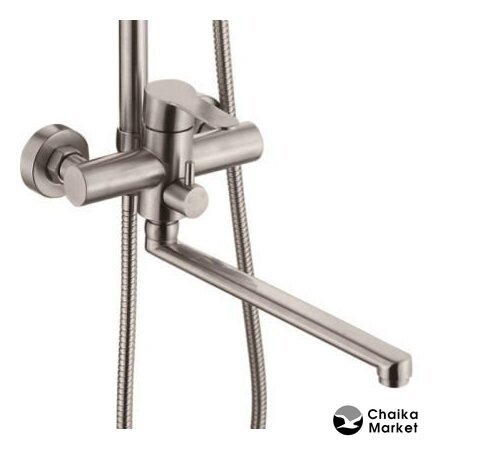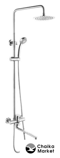 Комплектация | верхний душ, штанга, ручной душ (лейка), держатель лейки, шланг, смеситель, излив для ванны |