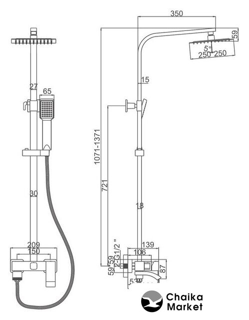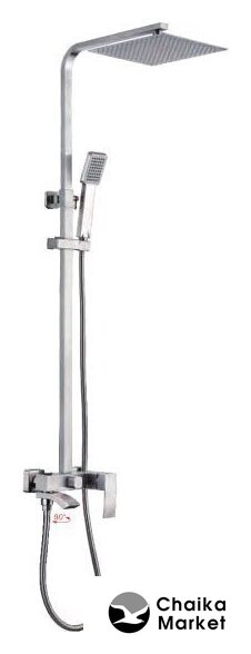 Комплектация | верхний душ, штанга, ручной душ (лейка), держатель лейки, шланг, смеситель, излив для ванны |