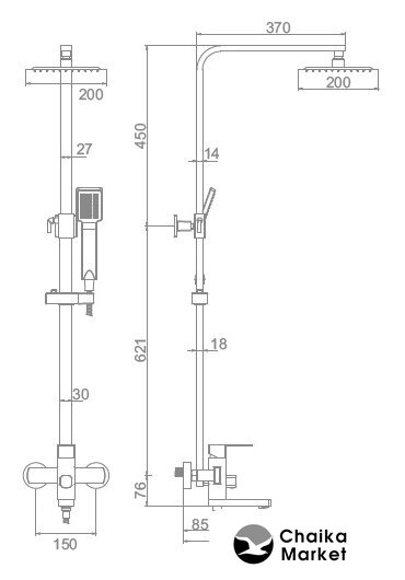 Диаметр (ширина) верхнего душа | 200 мм |