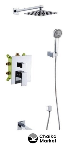 Комплектация | верхний душ, ручной душ (лейка), держатель лейки, шланг, излив для ванны |