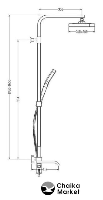 Комплектация | верхний душ, штанга, ручной душ (лейка), держатель лейки, шланг, смеситель, излив для ванны |