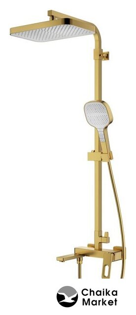 Комплектация | верхний душ, штанга, ручной душ (лейка), держатель лейки, шланг, смеситель, излив для ванны |