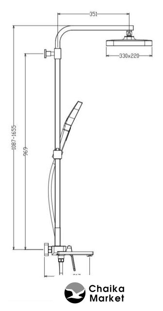 | Диаметр (ширина) верхнего душа | 330 мм |