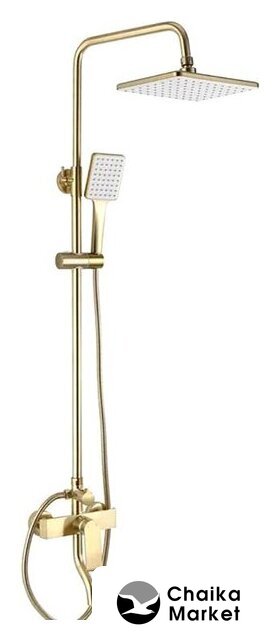 Комплектация | верхний душ, штанга, ручной душ (лейка), держатель лейки, шланг, смеситель, излив для ванны |
