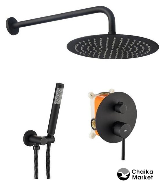 душевая система (с верхним душем), скрытый монтаж, механический смеситель, верхний душ 250 мм, ручной душ 29 мм