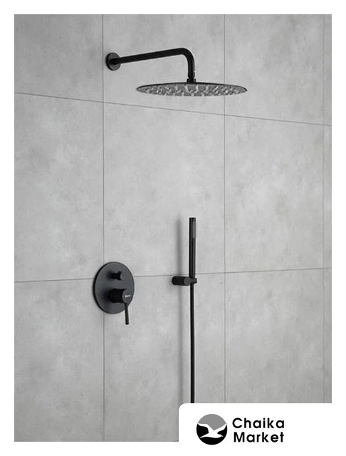 душевая система (с верхним душем), скрытый монтаж, отсутствует смеситель, верхний душ 300 мм, ручной душ 25 мм