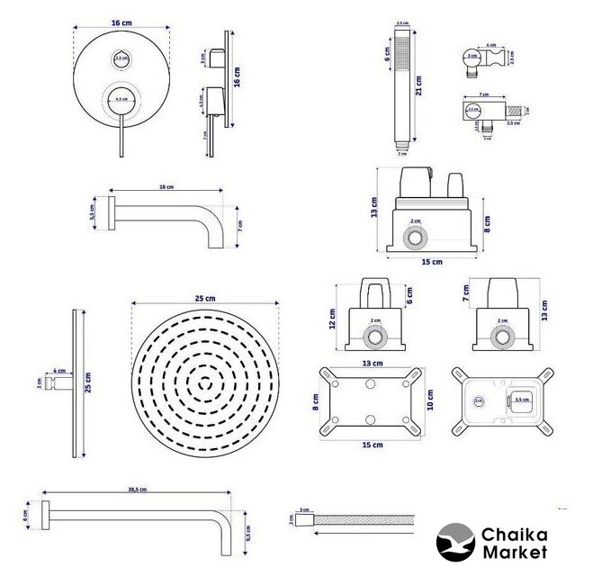 Диаметр (ширина) верхнего душа | 250 мм |