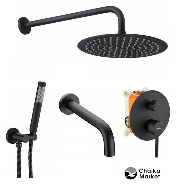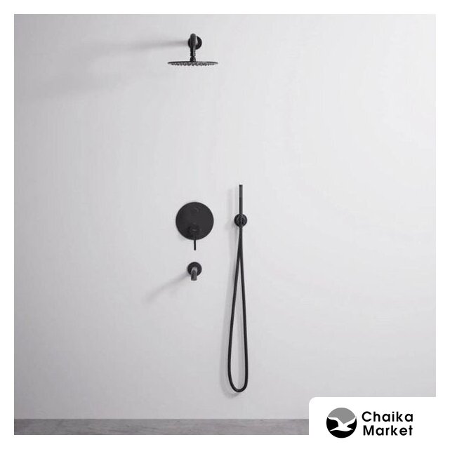 душевая система (с верхним душем), скрытый монтаж, отсутствует смеситель, верхний душ 200 мм, ручной душ 30 мм