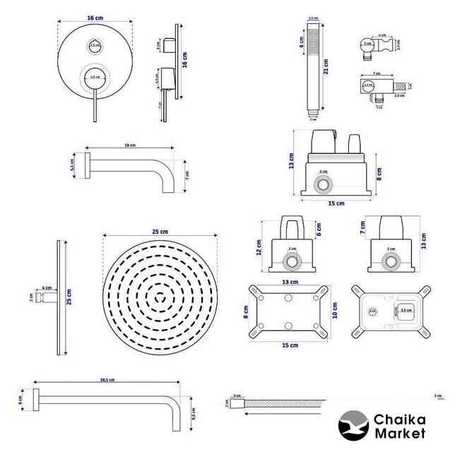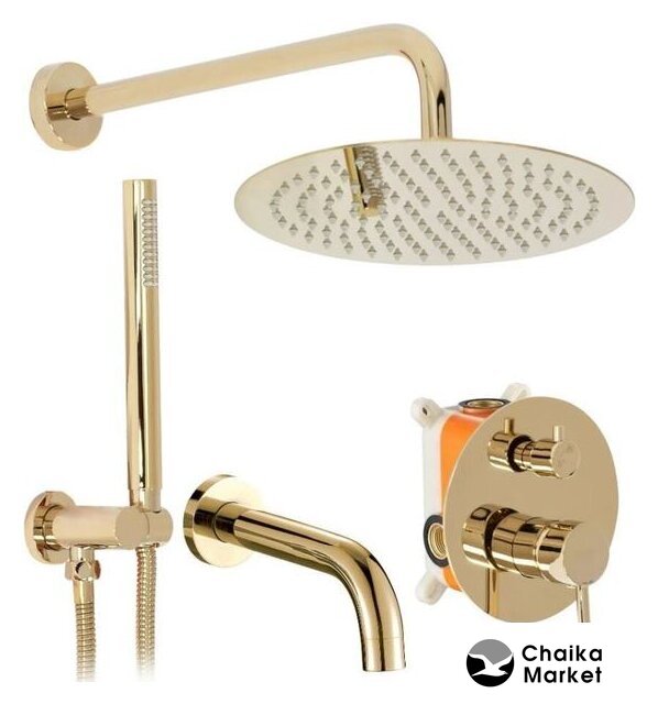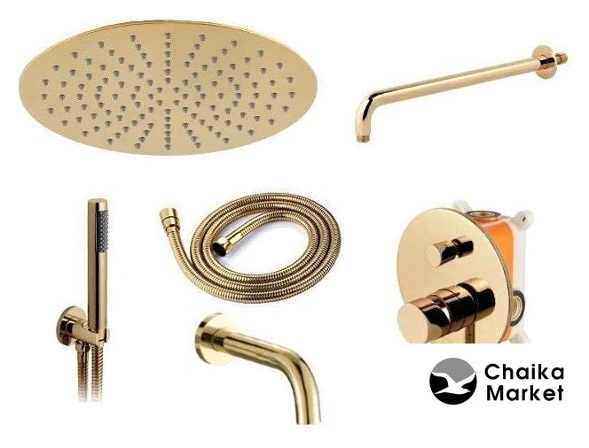 душевая система (с верхним душем), скрытый монтаж, отсутствует смеситель, верхний душ 200 мм, ручной душ 30 мм