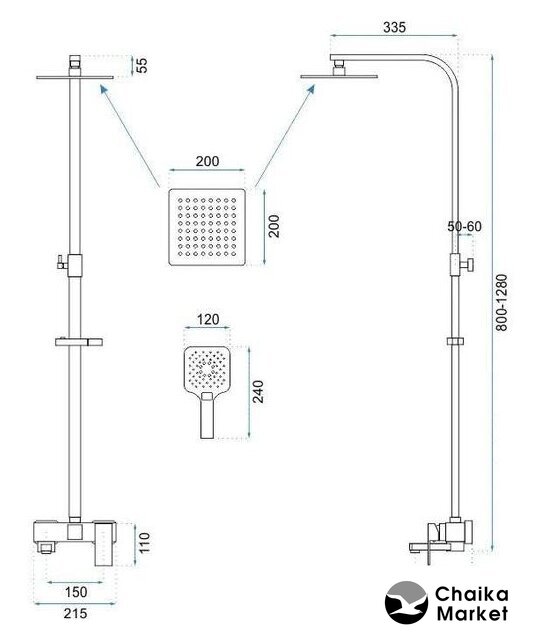 душевая система (с верхним душем), настенный монтаж, механический смеситель, верхний душ 250 мм