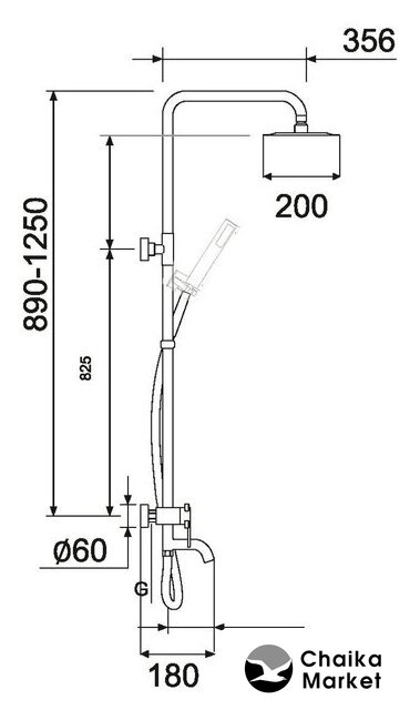 | Диаметр (ширина) верхнего душа | 200 мм |