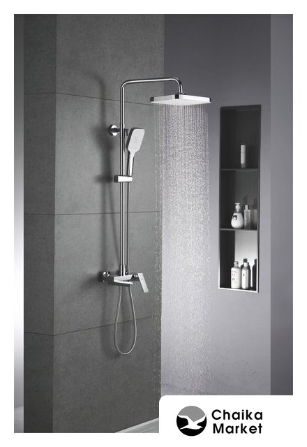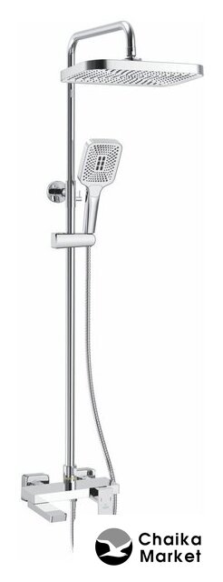 Комплектация | верхний душ, штанга, ручной душ (лейка), держатель лейки, шланг, смеситель, излив для ванны |