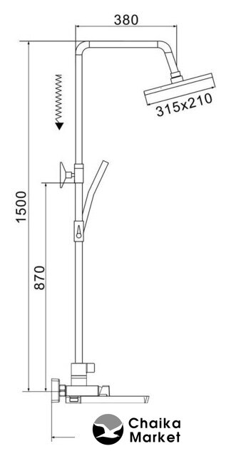 душевая система (с верхним душем), настенный монтаж, механический смеситель, верхний душ 340 мм, ручной душ