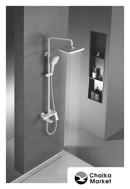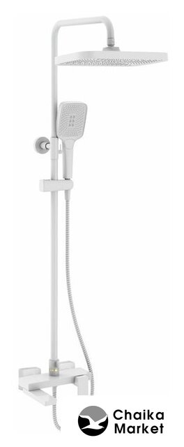 Комплектация | верхний душ, штанга, ручной душ (лейка), держатель лейки, шланг, смеситель, излив для ванны |