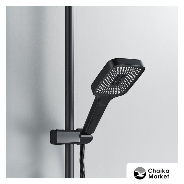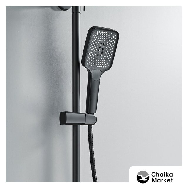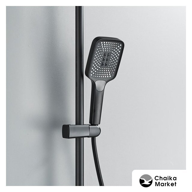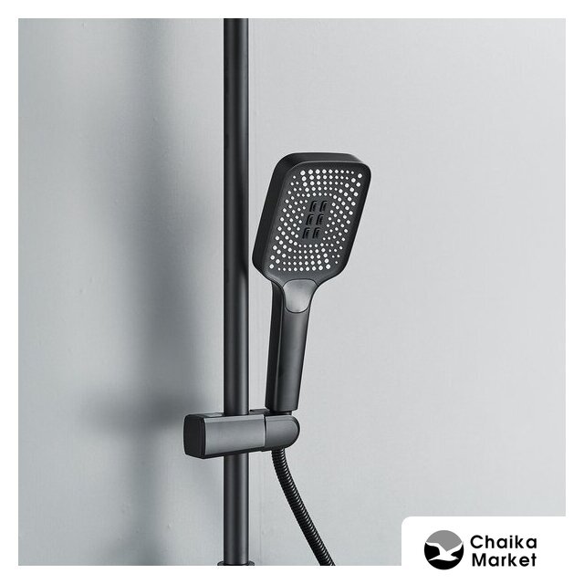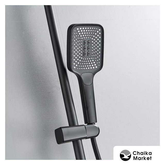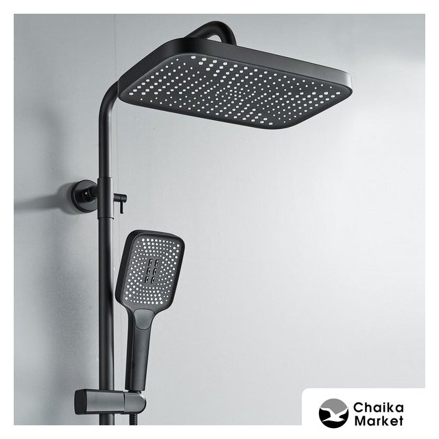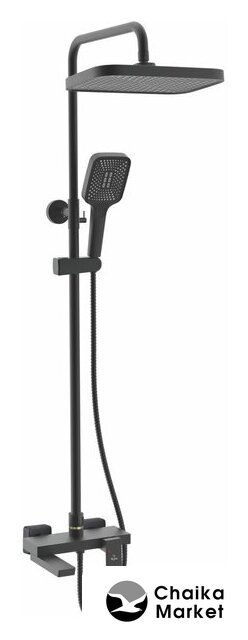 Комплектация | верхний душ, штанга, ручной душ (лейка), держатель лейки, шланг, смеситель, излив для ванны |