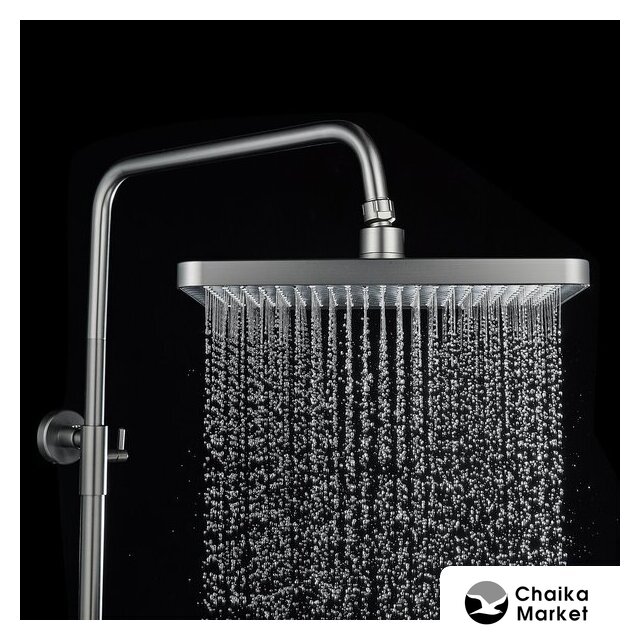 Комплектация | верхний душ, штанга, ручной душ (лейка), держатель лейки, шланг, смеситель, излив для ванны |