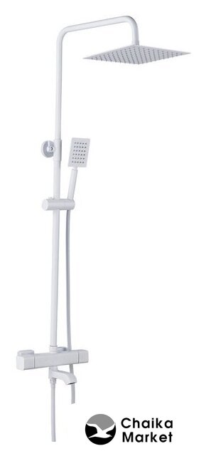 Комплектация | верхний душ, штанга, ручной душ (лейка), держатель лейки, шланг, смеситель, излив для ванны |