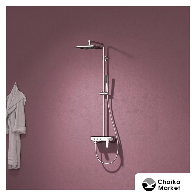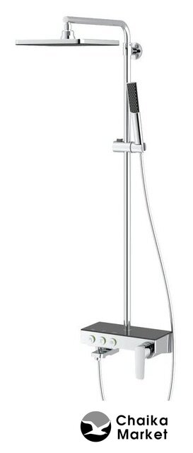 Комплектация | верхний душ, штанга, ручной душ (лейка), держатель лейки, шланг, смеситель, излив для ванны, полочка |