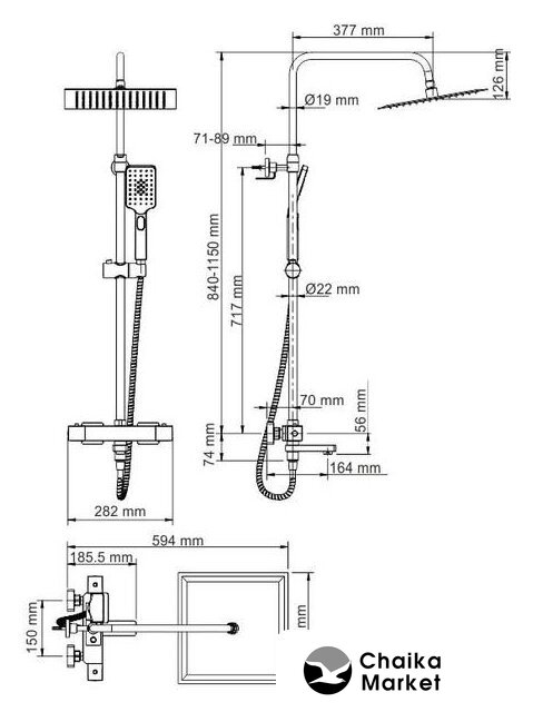 душевая система (с верхним душем), настенный монтаж, механический смеситель, верхний душ