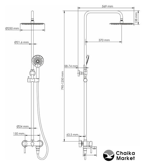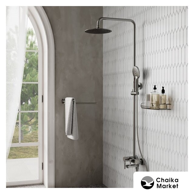 душевая система (с верхним душем), настенный/скрытый монтаж, механический смеситель, верхний душ 300 мм, ручной душ 132 мм