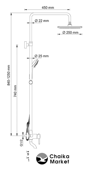душевая система (с верхним душем), настенный монтаж, механический смеситель, верхний душ 250 мм, ручной душ