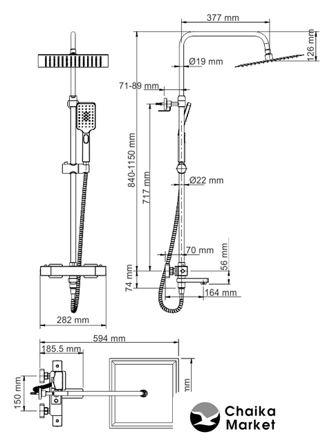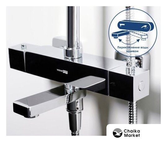 душевая система (с верхним душем), настенный монтаж, механический смеситель, верхний душ 250 мм, ручной душ