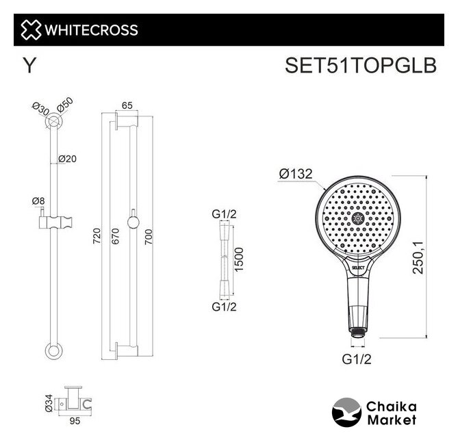 душевой гарнитур (без верхнего душа), настенный монтаж, механический смеситель, ручной душ 132 мм