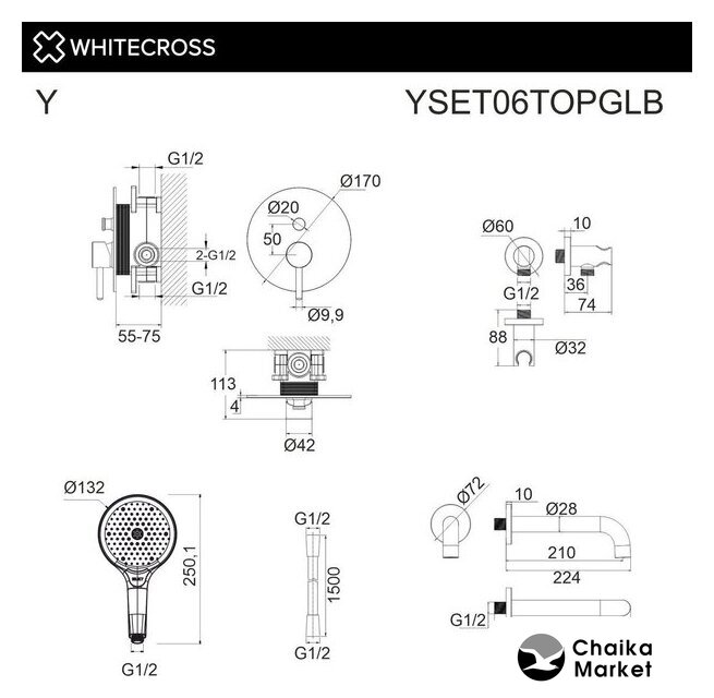 Комплектация | ручной душ (лейка), держатель лейки, шланг, смеситель, излив для ванны |