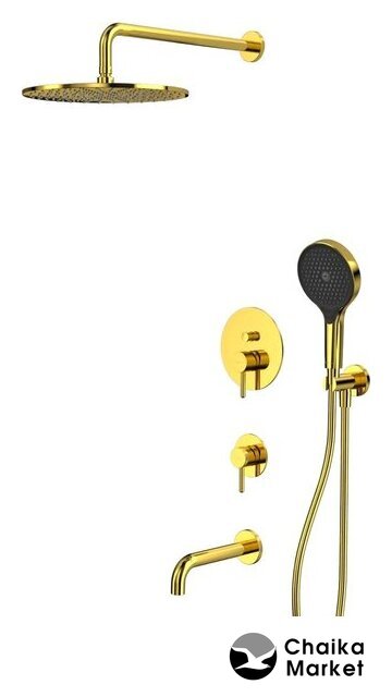 Комплектация | верхний душ, ручной душ (лейка), держатель лейки, шланг, смеситель, излив для ванны |
