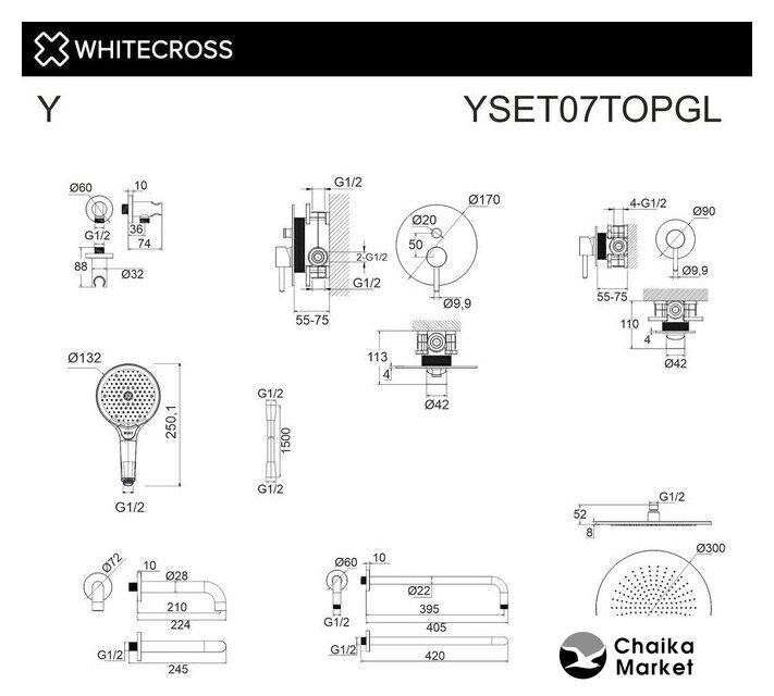 Диаметр (ширина) верхнего душа | 300 мм |
