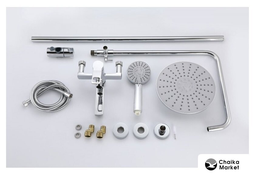 Комплектация | верхний душ, штанга, держатель лейки, шланг, смеситель, гигиенический душ (лейка) |