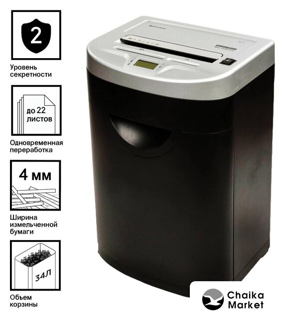 офисный, 5-й уровень секретности, кратковременный режим работы, 55 дБ, корзина: 22 л