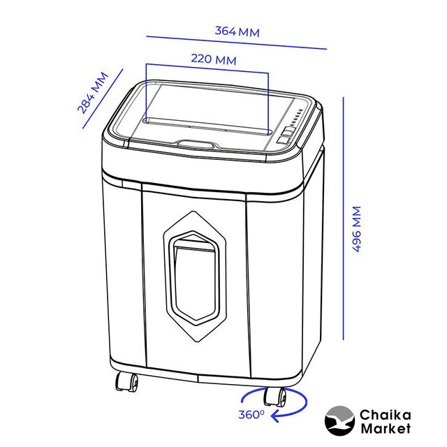 офисный, 3-й уровень секретности, кратковременный режим работы, 55 дБ, корзина: 38 л