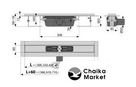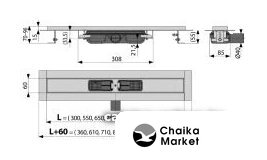 для душа, полипропилен/сталь, труба 40 мм, длина 1210 мм, гидрозатвор