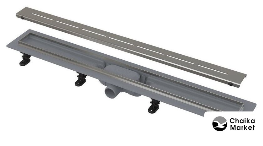 для душа, пластик/сталь, труба 40 мм, длина 750 мм, сливная решетка, цвет крышки: черный
