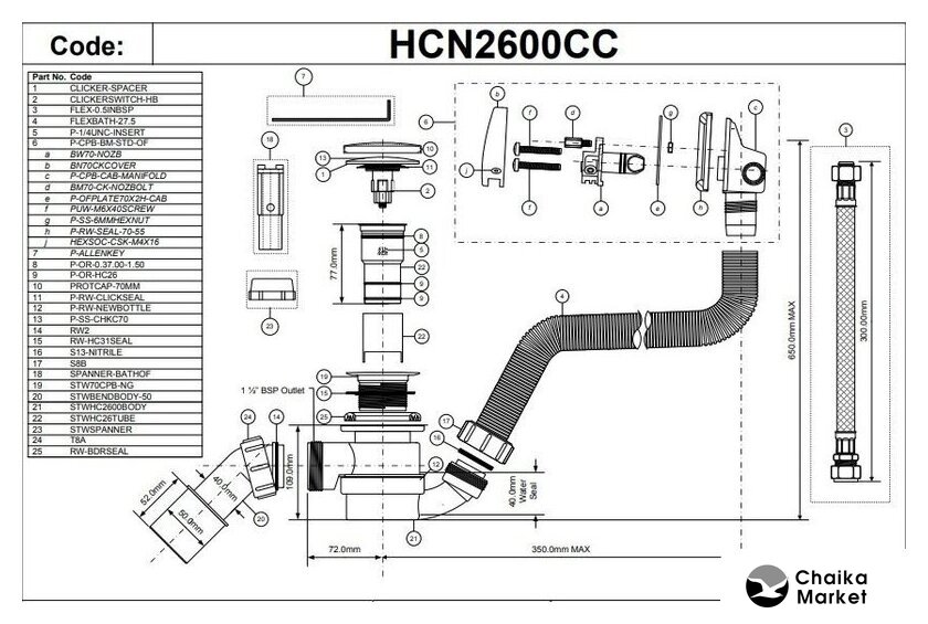 для душа, полипропилен/сталь, труба 50 мм, длина 695 мм, гидрозатвор, сливная решетка, цвет крышки: хром