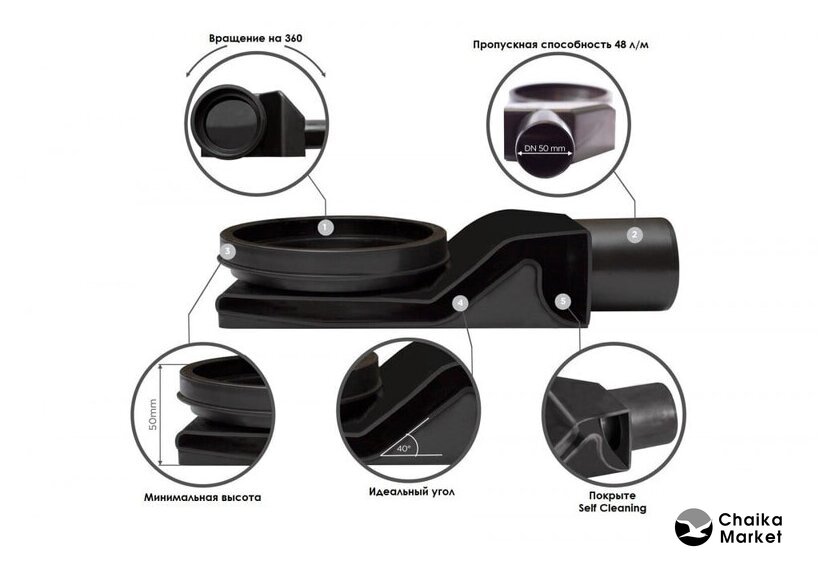для душа, сталь/полипропилен, гидрозатвор