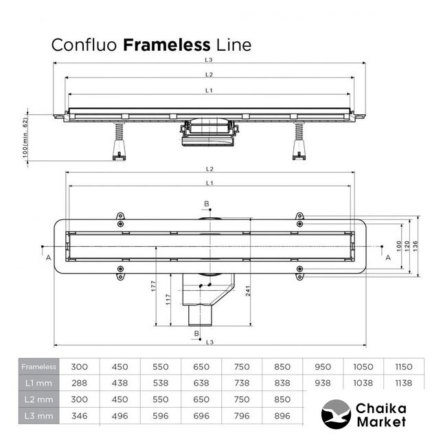 для душа, сталь/полипропилен, длина 850 мм, гидрозатвор