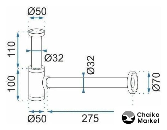 для душа, полипропилен/сталь, труба 40 мм, длина 908 мм, комбинированный, цвет крышки: хром