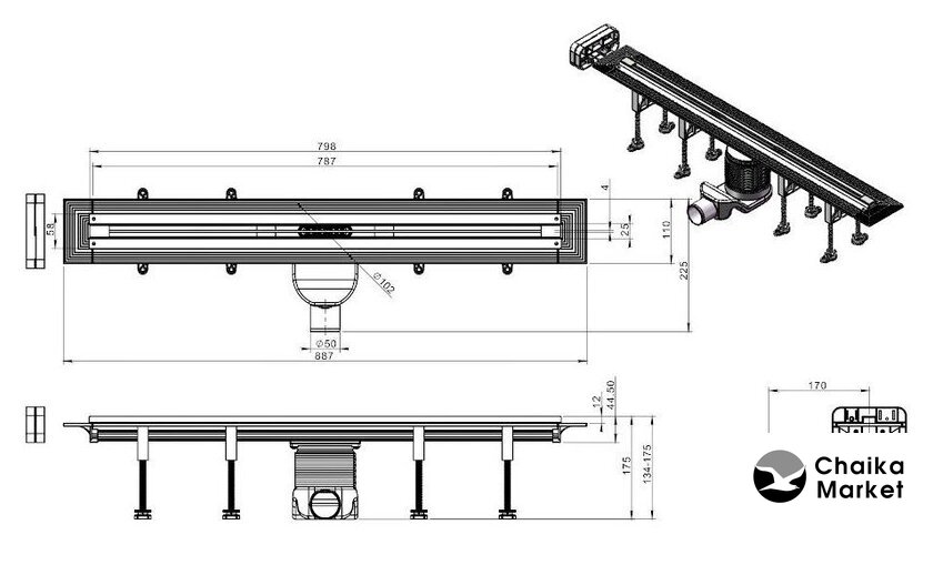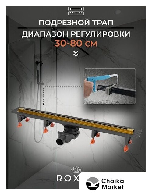 для душа, сталь, труба 50 мм, длина 700 мм, сливная решетка, цвет крышки: хром/нержавеющая сталь