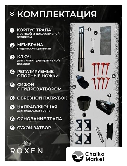 для душа, гидрозатвор, сливная решетка, цвет крышки: белый