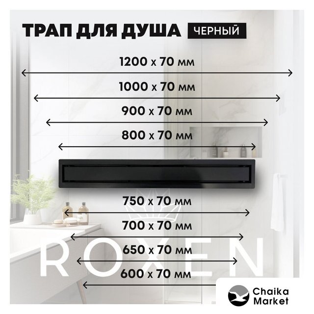 для душа, сталь/пластик, длина 740 мм, сухой затвор, сливная решетка