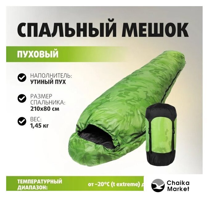мешок-кокон, зима, натуральный (пух), комфортная температура -10 °С, экстрем. температура -20 °С, 210x80 см