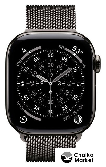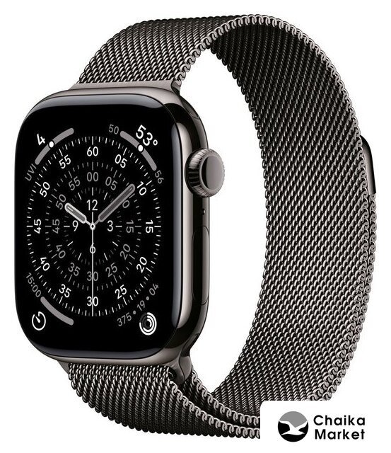 синхронизация с iOS, экран OLED, поддержка SIM-карты: eSIM, пульсометр, измерение кислорода в крови, измерение артериального давления, ЭКГ, AOD, GPS, Bluetooth 5.3, корпус: металл (титан), ремешок: металл (сталь)
