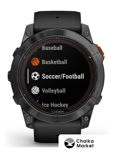 Профессиональные функции | анализ тренировочной нагрузки (Training Load/Training Load Focus), измерение частоты шага (Cadence), измерение длины шага (Stride Length), измерение времени контакта с землей (Ground Contact Time), измерение показателя уровня сложности трассы (Grit), измерение поддержки постоянной скорости (Flow), измерение состояния выносливости (Performance Condition), контроль темпа бега (Pace/PacePro), расчет кардиореспираторной подготовленности (VO2 Max), расчет времени восстановления (Recovery Time), расчет готовности к тренировке (Body Battery), расчет статуса вариабельности сердечного ритма (HRV), расчет прогресса тренировки (Training Status), расчет тренировочного эффекта (Training Effect), расчет тренировочного эффекта при плавании (SWOLF), построение обратных маршрутов (Tracback), прогноз времени гонки (Race Time Prediction), отображение уклона и усиления высоты подъема (ClimbPro Ascent Feature), оценка функциональной пороговой мощности (FTP), фиксация порога лактата/усталости (Lactate Threshold), фиксация отклонений на каждом шаге во время бега (Vertical Oscillation), данные о приливах, профили для виндсерфинга и кайтсерфинга, карты популярных маршрутов (Trendline), карты лыжных трасс (Resort Ski Maps) |