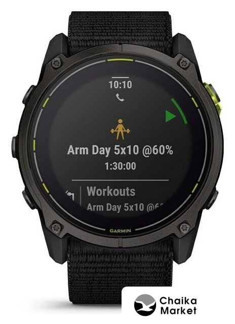 синхронизация с Android/iOS, экран AMOLED 1.4", поддержка SIM-карты: нет, пульсометр, измерение кислорода в крови, AOD, GPS, корпус: пластик/металл (титан), ремешок: ткань
