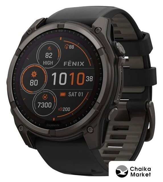 синхронизация с Android/iOS, экран AMOLED 1.3", поддержка SIM-карты: нет, пульсометр, измерение кислорода в крови, AOD, GPS, корпус: пластик/металл (титан), ремешок: силикон