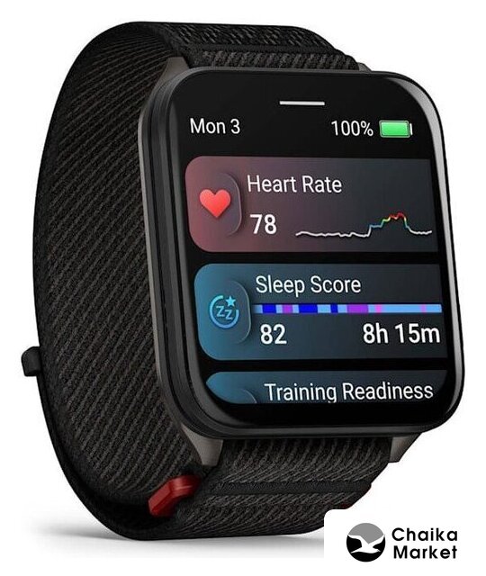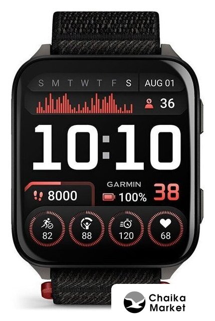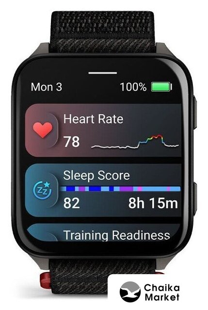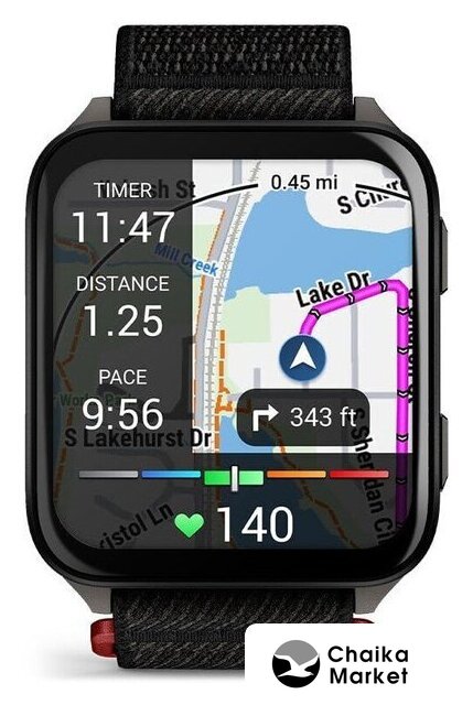 синхронизация с Android/iOS, экран Memory LCD (MIP) 0.9" x 0.9", поддержка SIM-карты: нет, пульсометр, измерение кислорода в крови, GPS, корпус: пластик, ремешок: силикон