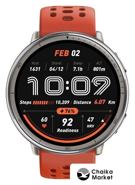 синхронизация с Android/iOS, экран AMOLED 1.32", поддержка SIM-карты: нет, пульсометр, измерение кислорода в крови, AOD, GPS, Bluetooth 5.4, корпус: металл (сталь), ремешок: силикон